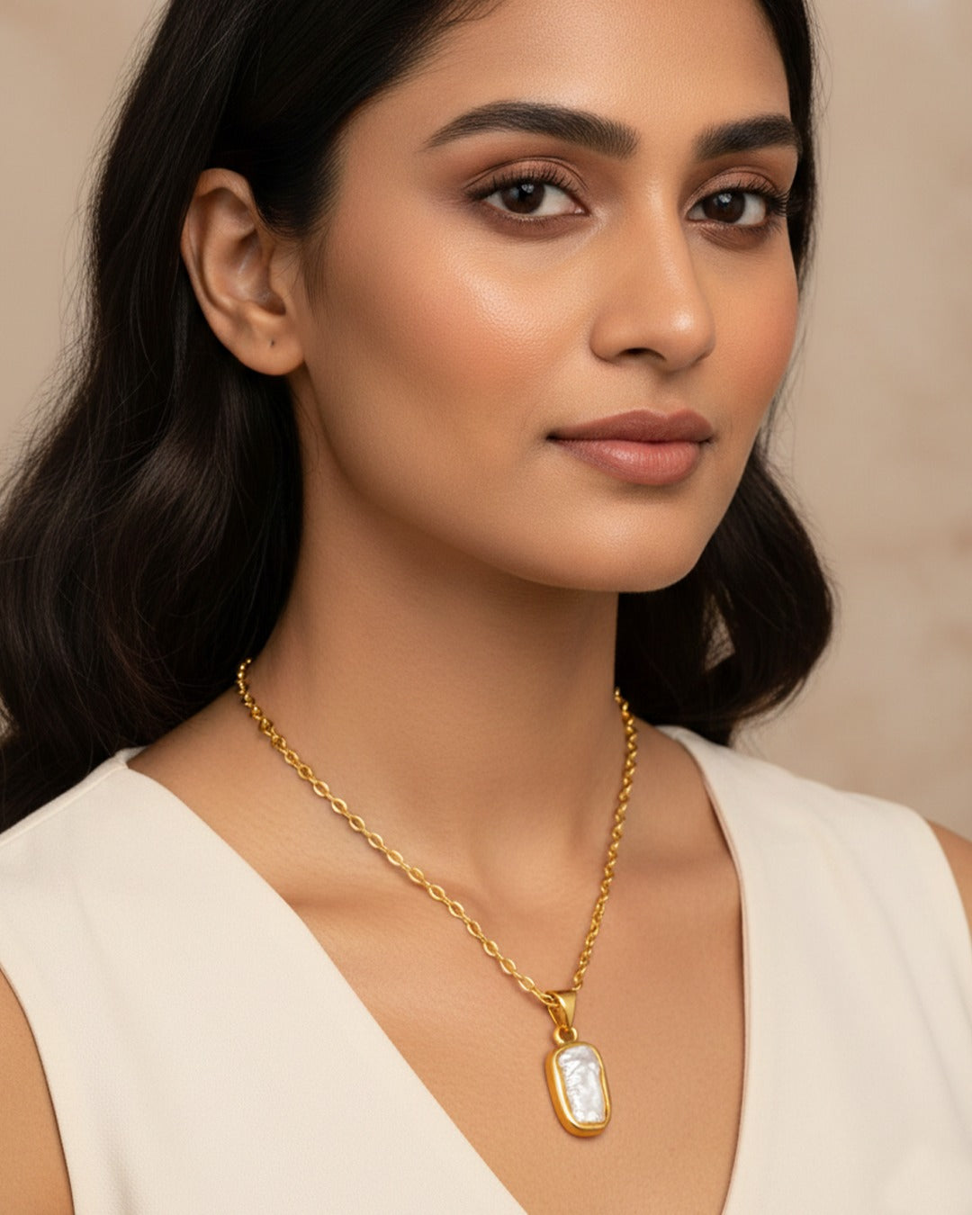 Grace meets minimalism in our Serene Bar Chain — featuring a dainty gold chain adorned with luminous pearls and a sleek vertical bar drop. Lightweight, versatile, and perfect for everyday elegance or special occasions.