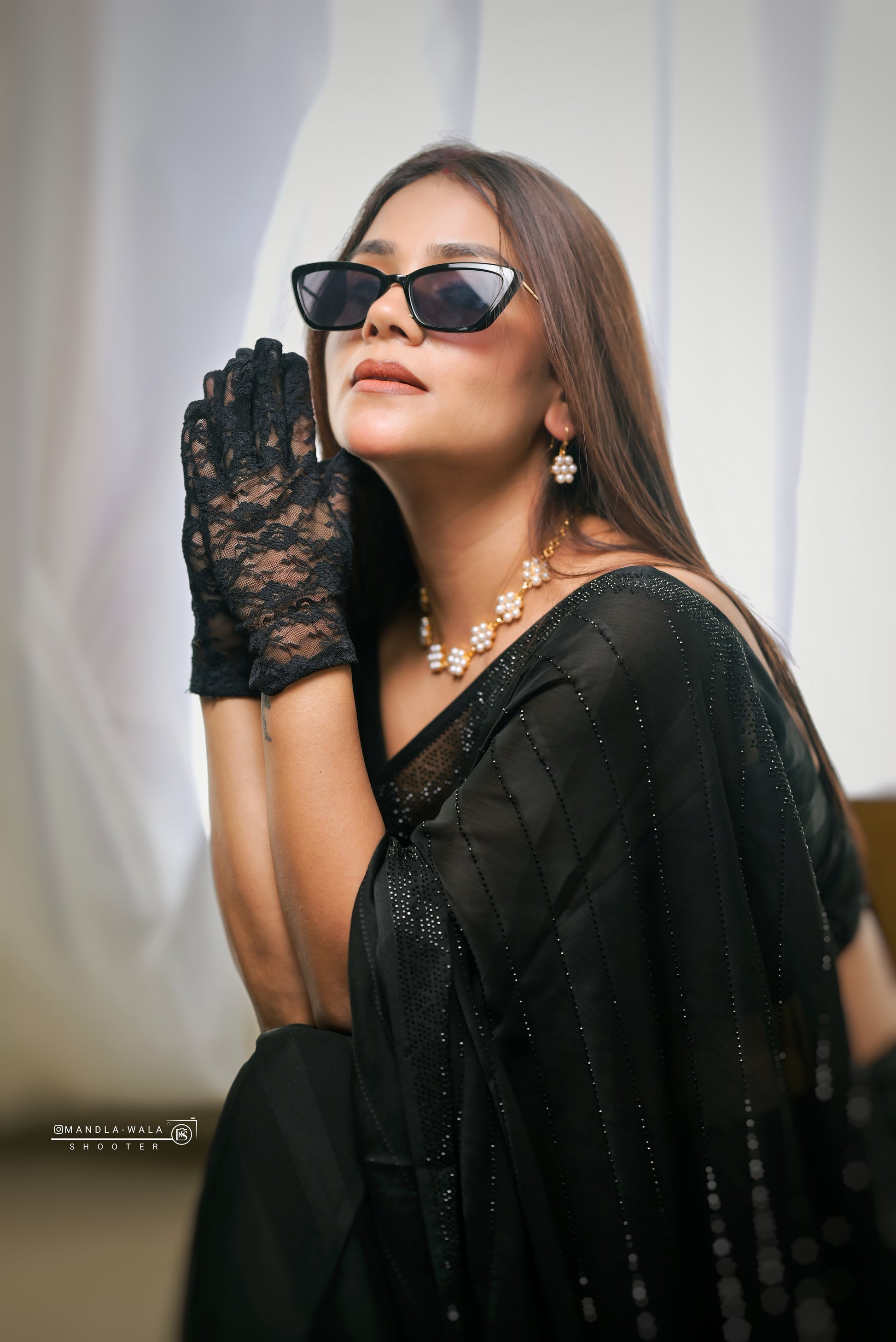 A delicate pearl choker with a graceful, flowing design, perfect for a refined, feminine look.