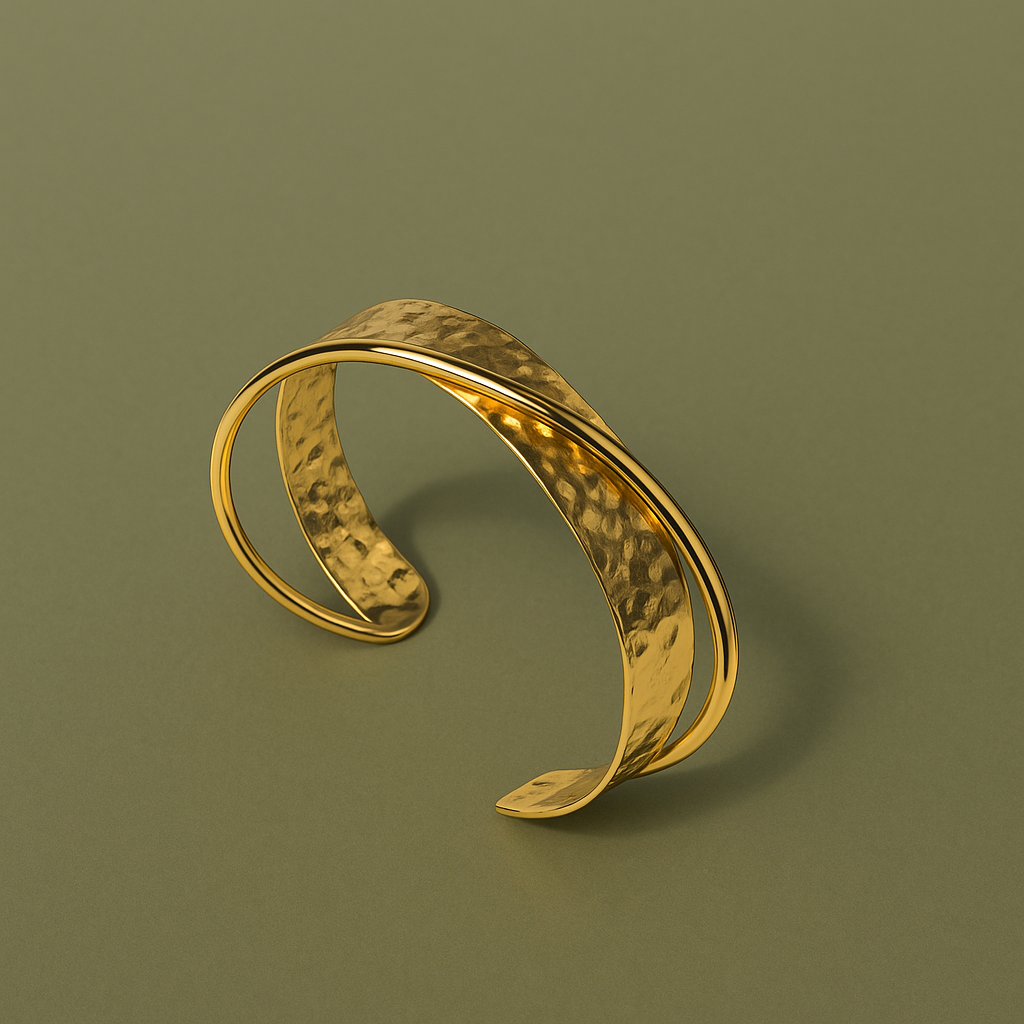 Elevate your style with the LustreLink Bracelet, featuring a chic hammered finish paired with a sleek, polished band for a striking contrast. Its intertwined design symbolizes strength and unity, making it a versatile accessory for both everyday wear and special occasions.