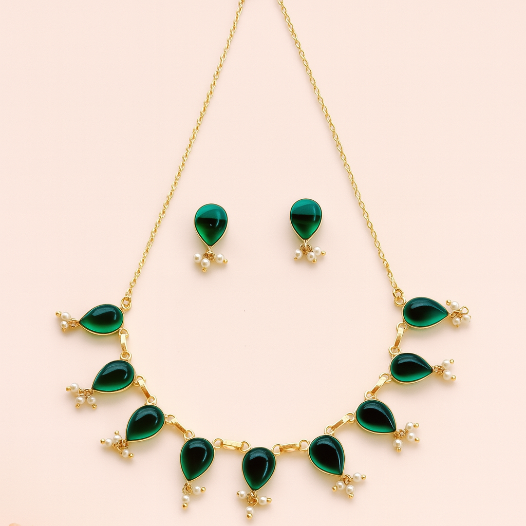 Adorn yourself with this stunning stone necklace set, framed elegantly for a sophisticated look. Designed to add vibrancy to any outfit, this set blends charm and elegance, making it a perfect choice for special occasions.