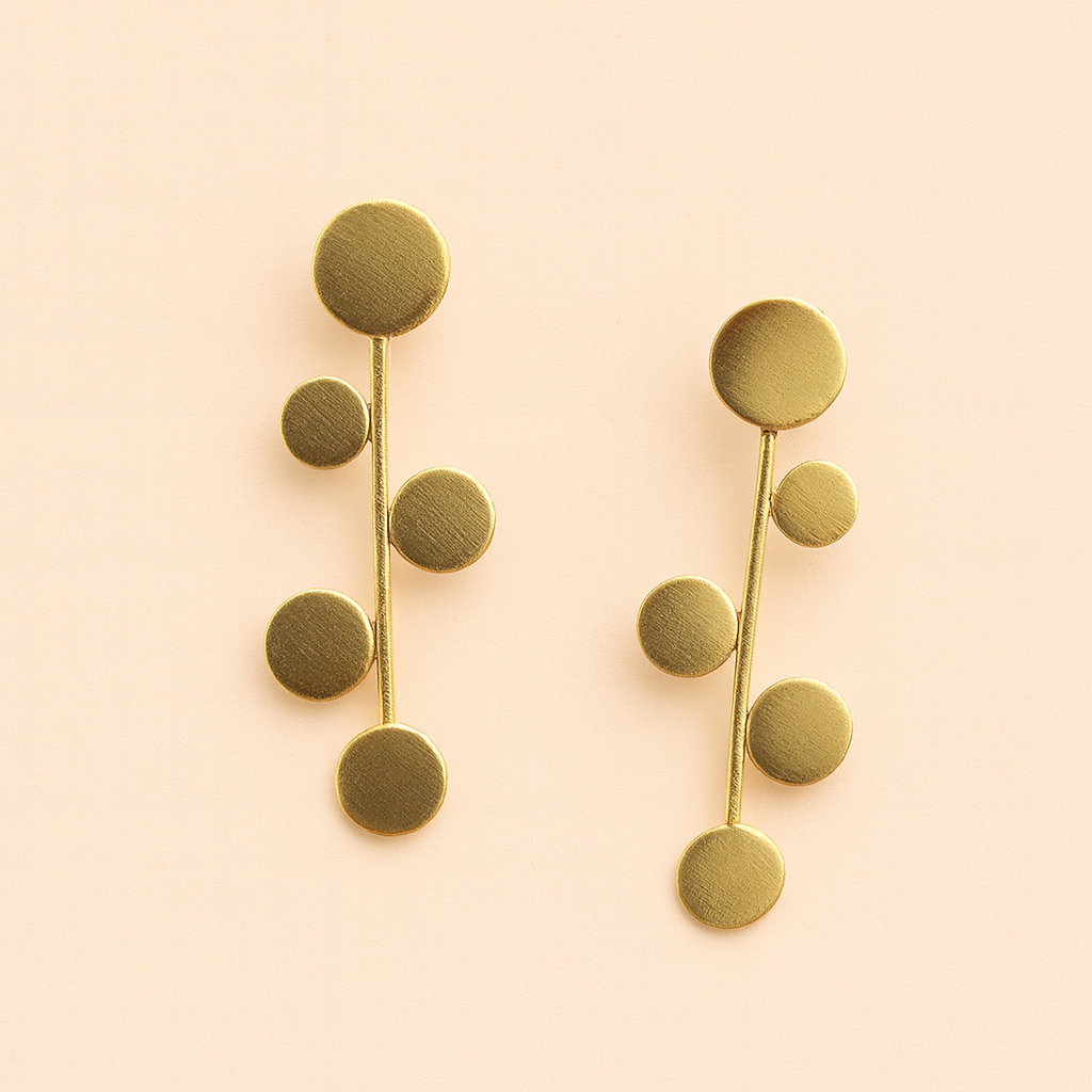 Modern, sleek, and versatile – our Golden Orbit Earrings are designed to make a bold yet elegant statement. Crafted in a matte gold finish, these earrings feature cascading circular discs along a slim bar, creating a geometric balance of simplicity and style. Perfect for daily wear or evening outings, they pair effortlessly with both casual and chic outfits. A must-have for Gen-Z and minimal jewelry lovers who adore trend-forward designs.
