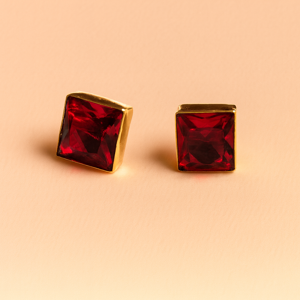 These square stone stud earrings showcase a bold, geometric design with a sparkling stone, adding a touch of modern elegance to any outfit.