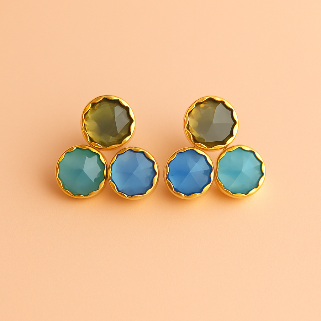 Add vibrant charm to your look with these premium-quality tricolor stone stud earrings. Featuring a stunning blend of three dazzling hues, these earrings are crafted for a luxurious finish and everyday sophistication.